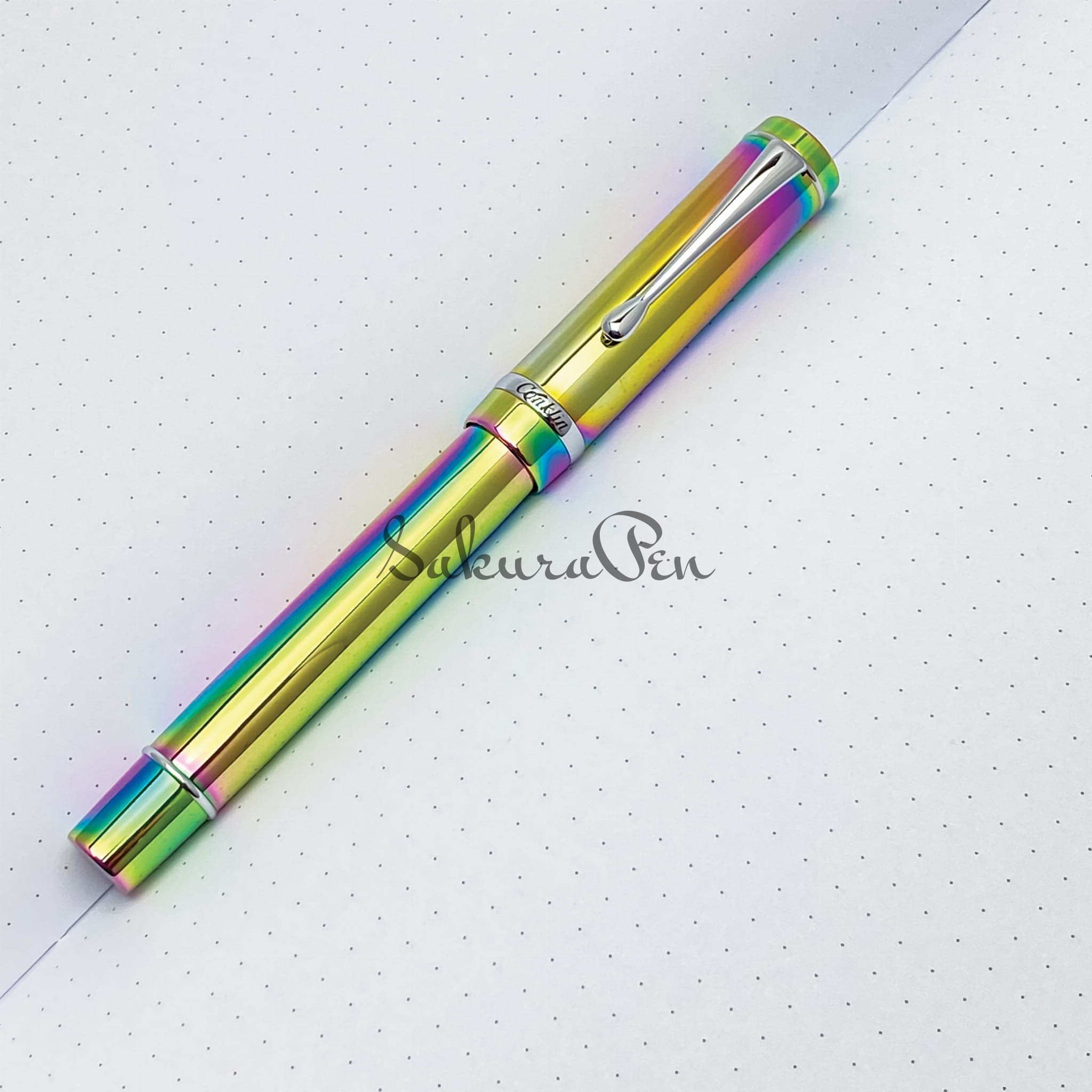 Pióro wykonane jest z litego mosiądzu z tęczową powłoką PVD. Kolory wahają się od delikatnych odcieni fioletowo-niebieskiego nieba po czarujący turkusowy płaszcz zmieszany z połyskującą żółcią.