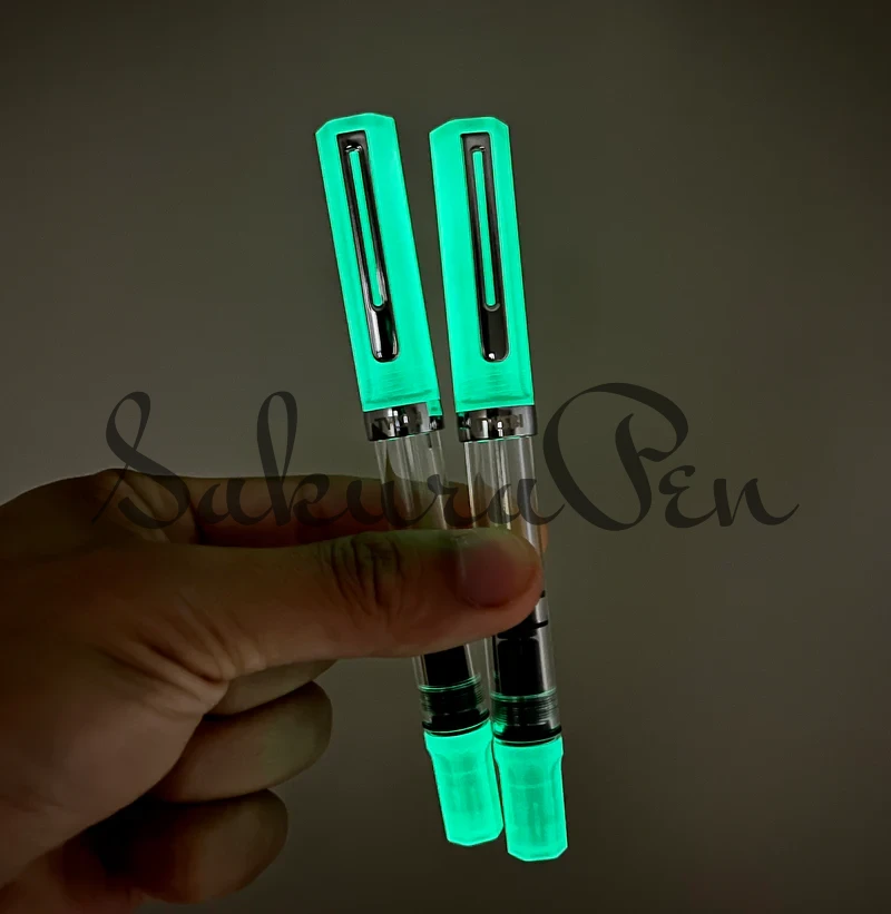 Pióro wieczne TWSBI Eco w kolorze zielonym i pokrętło tłoka są uzupełnione metalowymi detalami. Po wystawieniu na słońce świeci w ciemności!